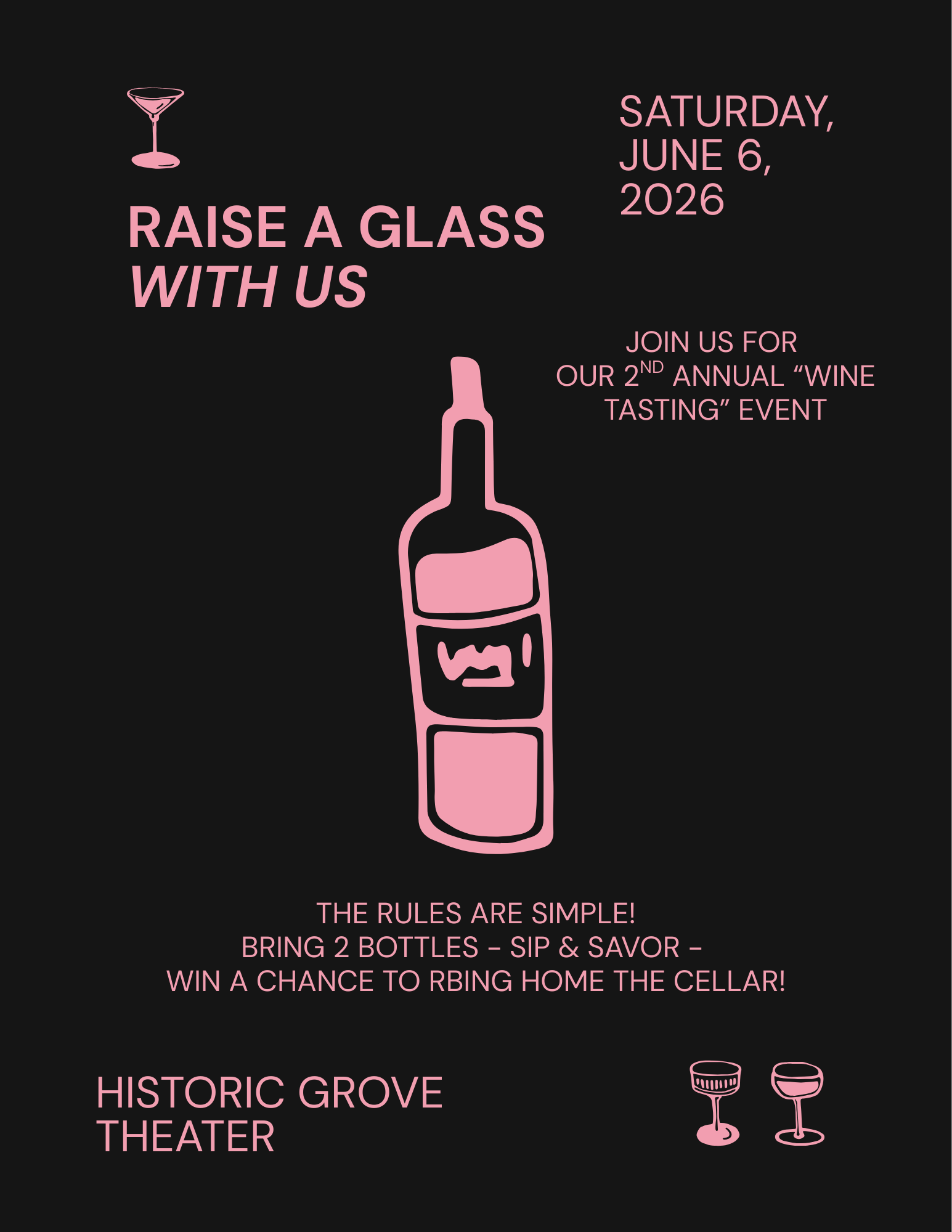 Friends of the Grove Theater is a non-profit organization that collects donations and organizes fundraising events to support the mission of the Historic Grove Theater.
